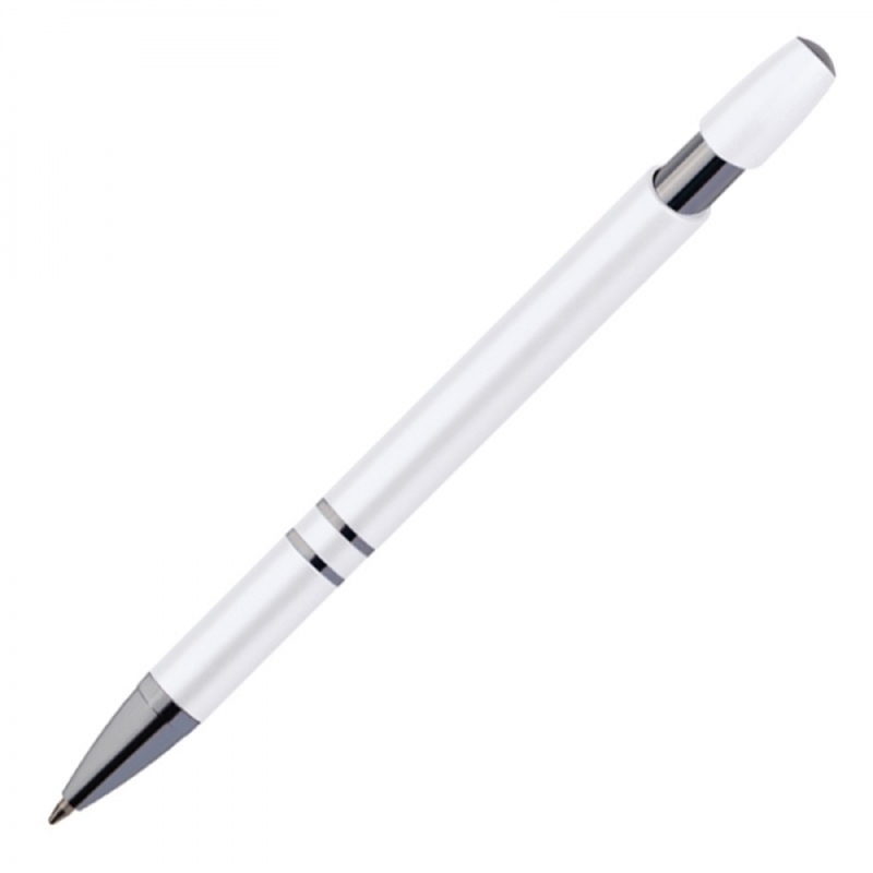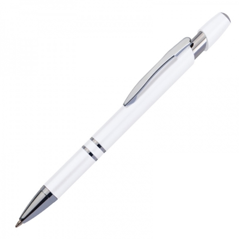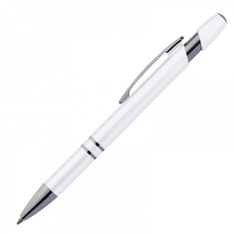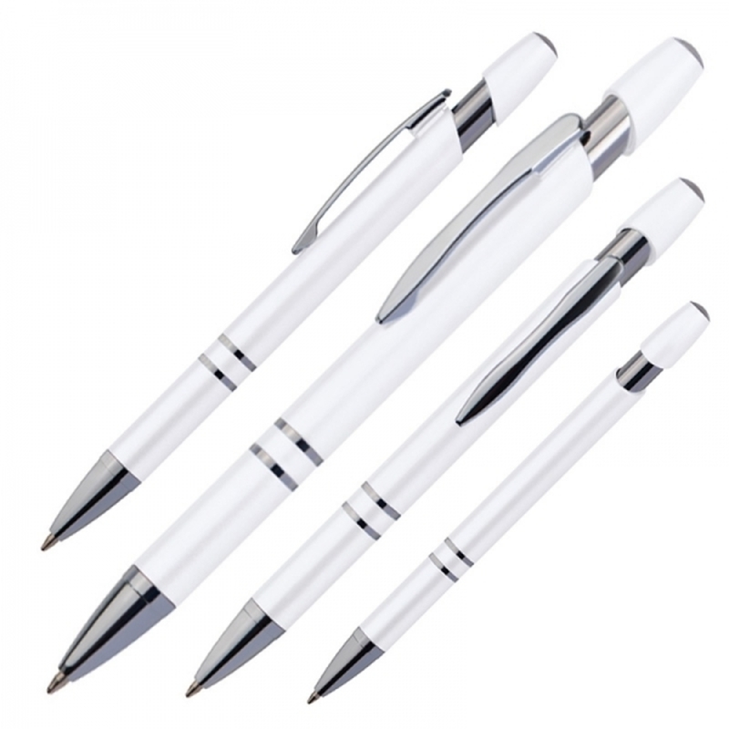 Metallic-looking plastic ballpen with large capacity refill and push function. We will print your logo below the clip.