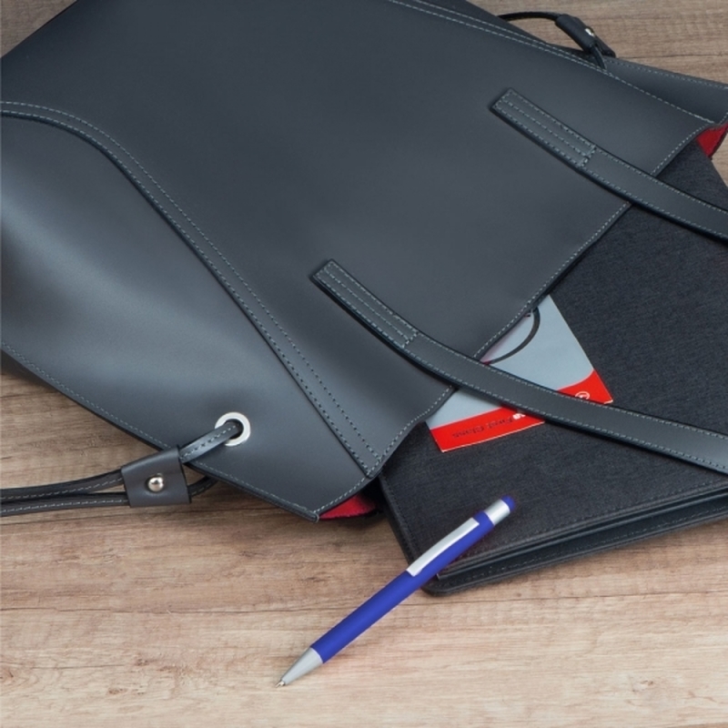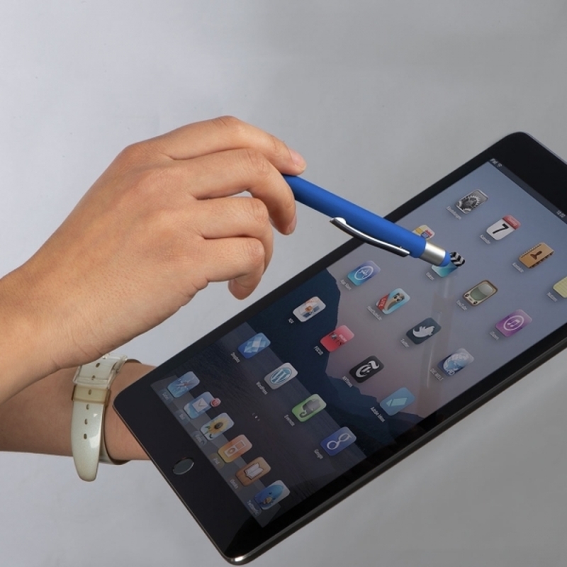 Metal ball pen with rubber finish surface, touch pen and blue writing large capacity refill. We laser your logo on the right side of the clip.