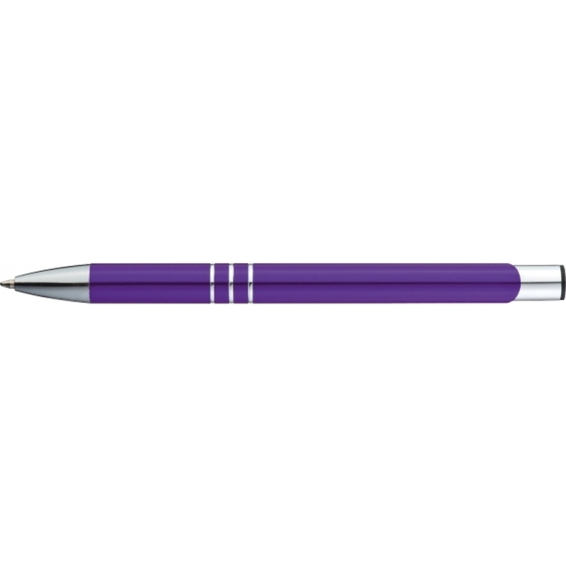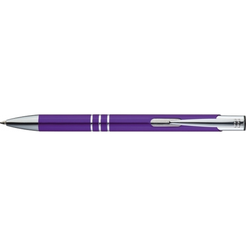 Metal pen with blue-writing refill. We will engrave your logo below the clip.
