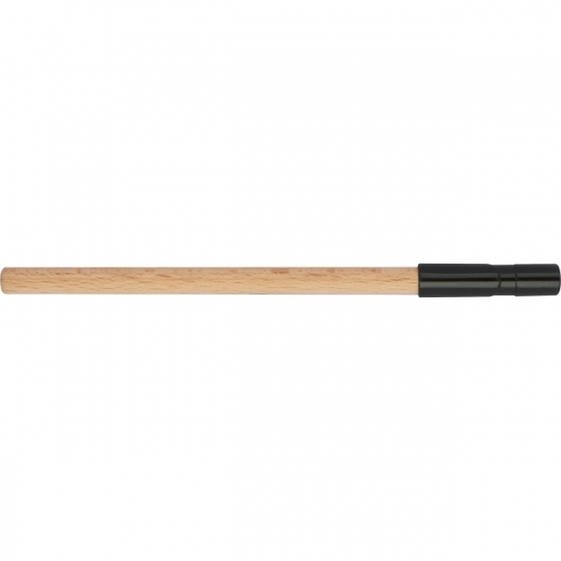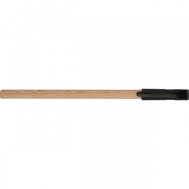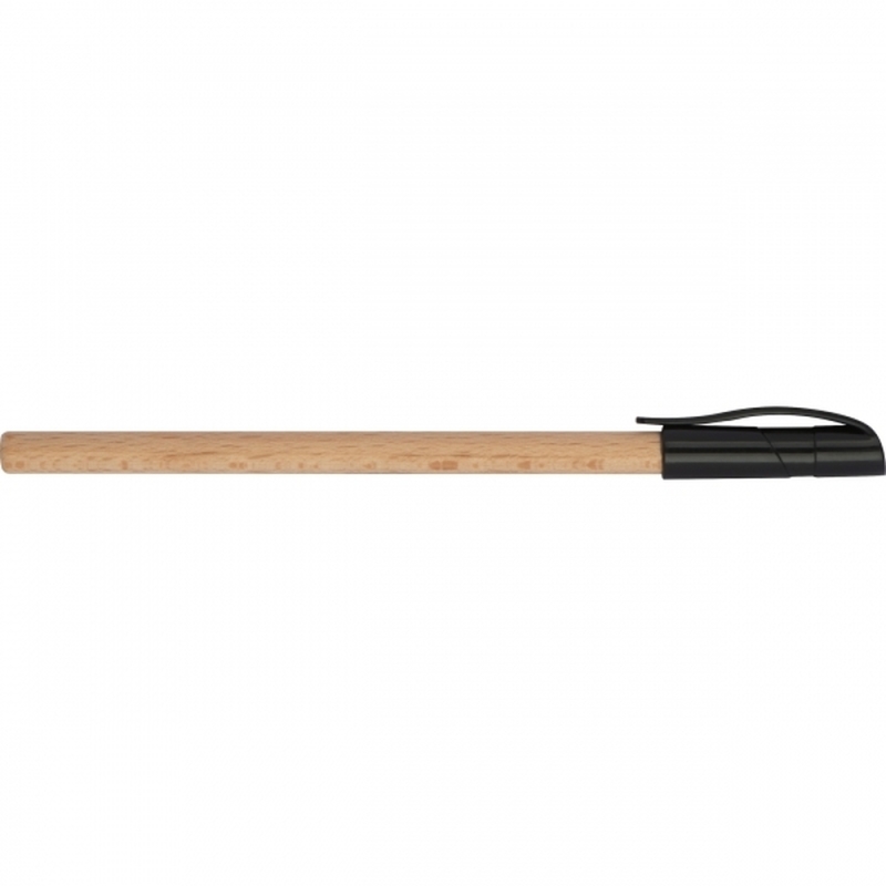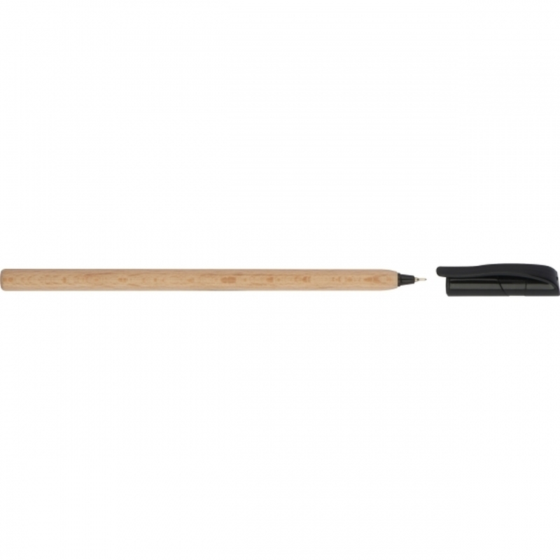Handy, black writing ballpen made of wood with black plastic cap. Your logo will be engraved.