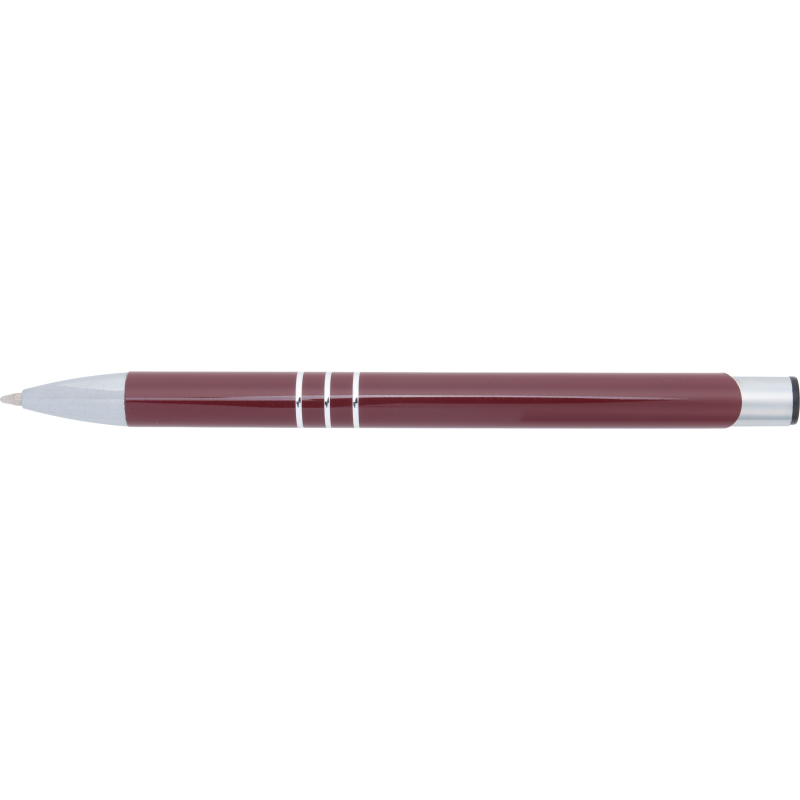 Fully lacquered metal ballpen with 3 decorative rings and blue-writing refill with large capacity. Your logo will be engraved to the right of the clip.