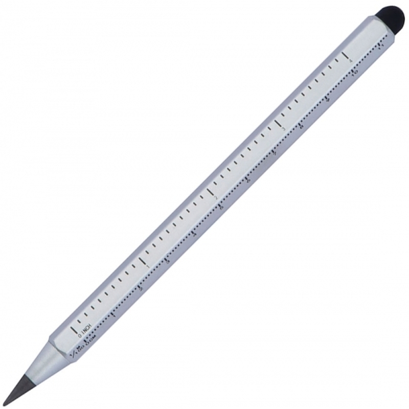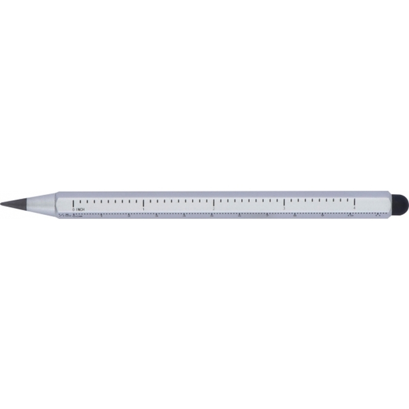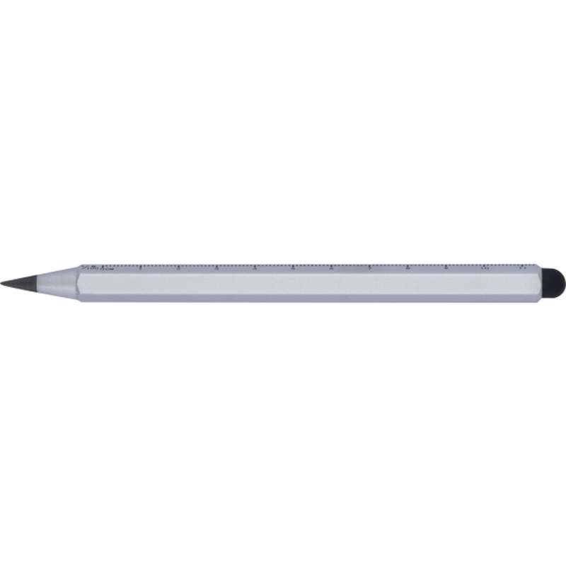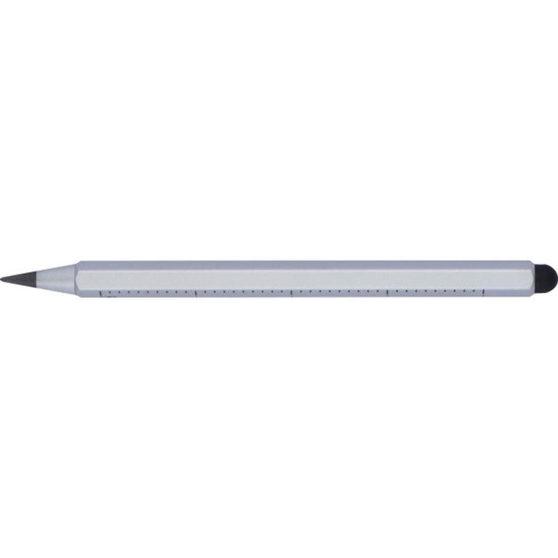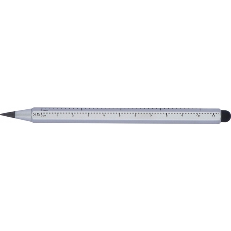 Aluminum inkless pen with touch function and scale in cm and inch. The lead is made of a mixture on graphite and metal, which makes it extremely durable. Your logo will be engraved on the free space on the barrel.