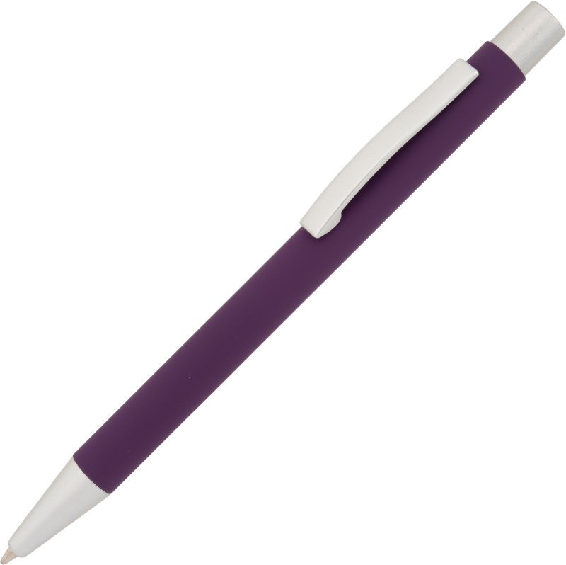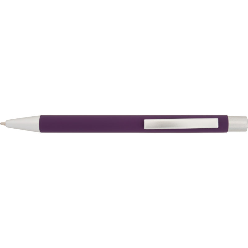 Metal retractable ballpoint pen with rubber finish surface and large capacity blue ink refill. We laser your logo on the right side of the clip on the barrel.