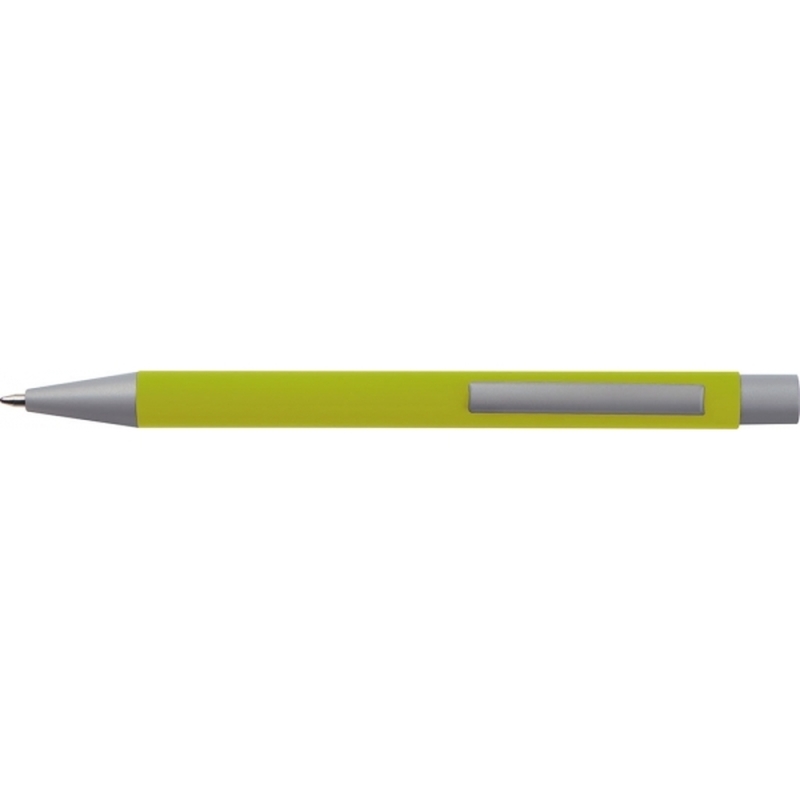 Metal retractable ballpoint pen with rubber finish surface and large capacity blue ink refill. We laser your logo on the right side of the clip on the barrel.