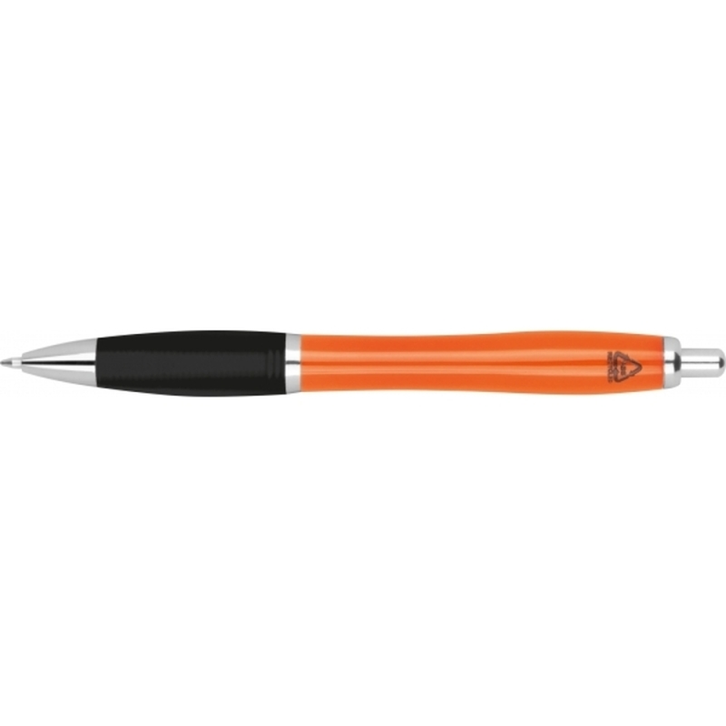 Ball pen made of recycled ABS with rubber grip zone and big refill. We print your logo on the right side of the clip.