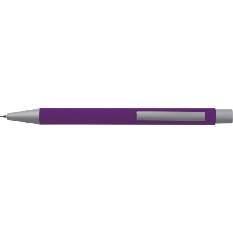 Mechanical pencil made of metal with a rubber finish surface and two pencil leads (0,5 mm).