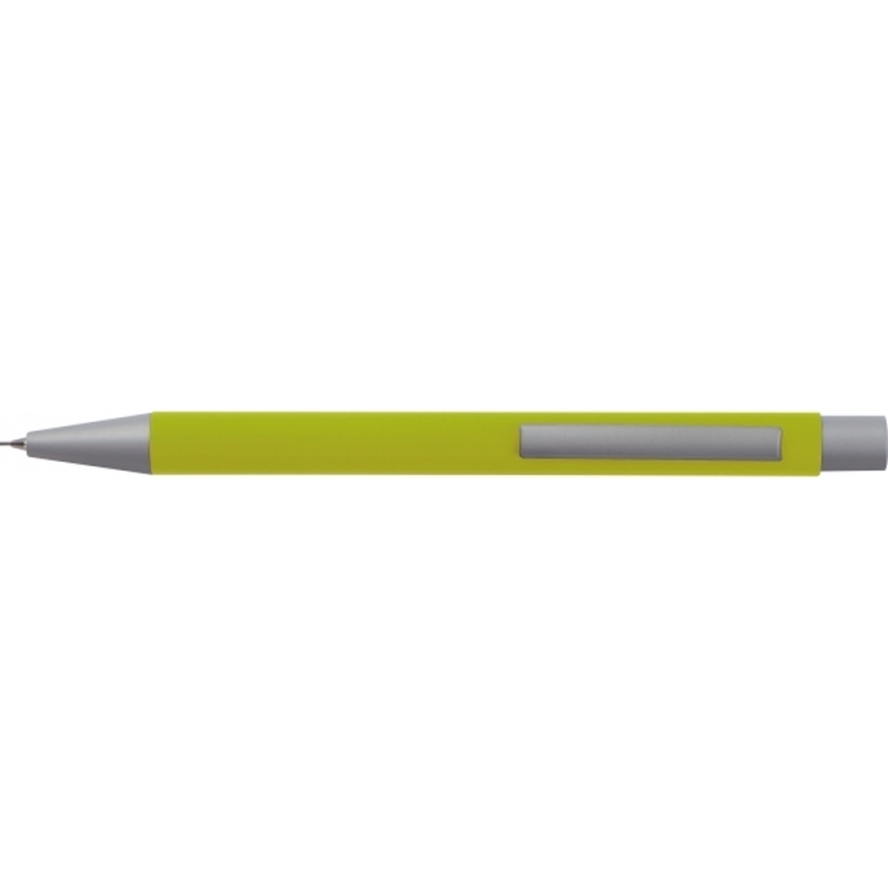 Mechanical pencil made of metal with a rubber finish surface and two pencil leads (0,5 mm).