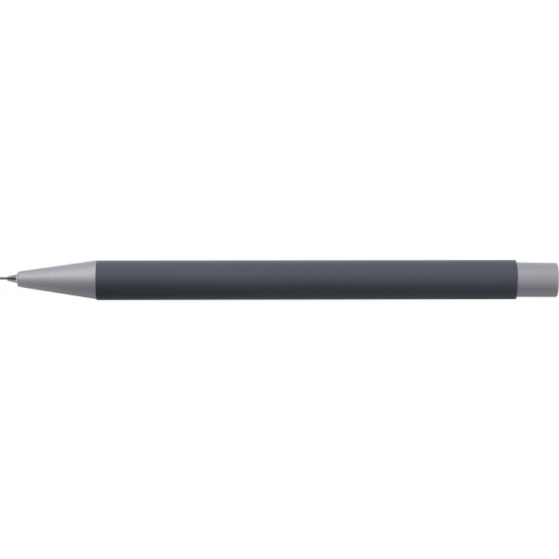 Mechanical pencil made of metal with a rubber finish surface and two pencil leads (0,5 mm).