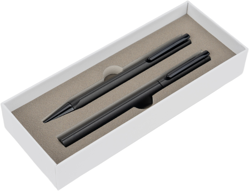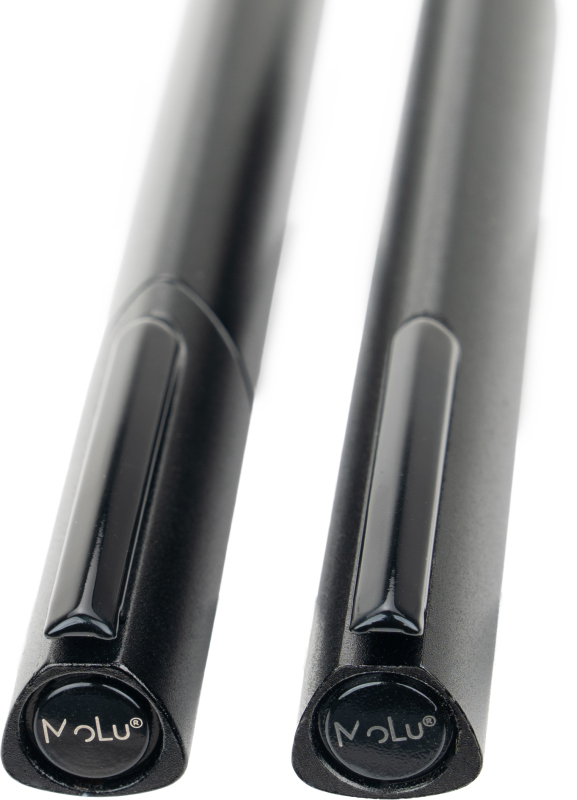 An elegant writing set from MOLU, consisting of a ballpoint pen and a ballpoint pen. This set impresses with its unusual triangular shape, which is not only stylish, but also fits perfectly in the hand. The unique design, which was developed in accordance with the principles of the golden ratio, perfectly combines aesthetics and ergonomics.
