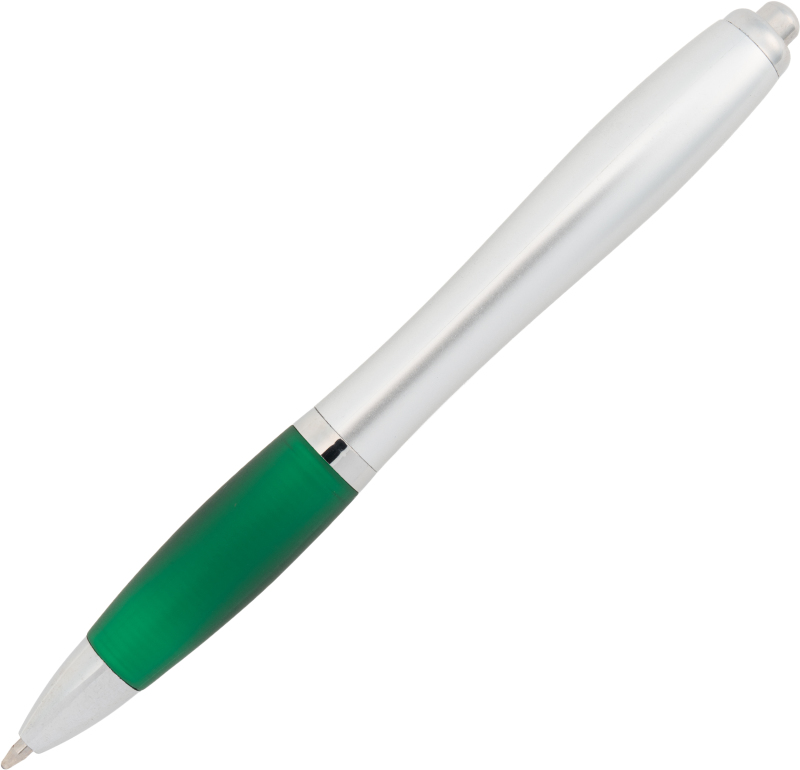 Ballpoint pen with blue writing large capacity refill and color contrast soft touch grip zone. We print your logo on the right side of the clip.
