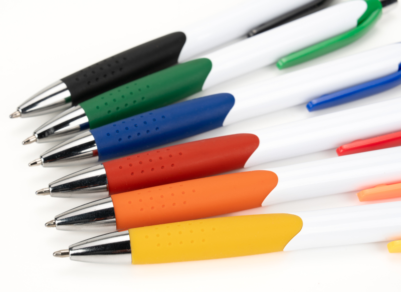 Not just black and white! This colourful ball pen got lots of space for your multicoloured logo. The grip zone is made for a nice and easy handling. We will pad print your logo onto the shaft.